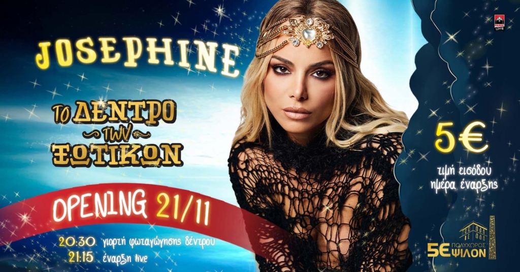 Μουσική, φως, χρώμα και η ατμόσφαιρα των Χριστουγέννων δημιουργούν ένα μαγικό σκηνικό στον Πολυχώρο 5 ΕΨΙΛΟΝ, όπου η Josephine θα δώσει τον ρυθμό της μεγάλης γιορτής που έρχεται.